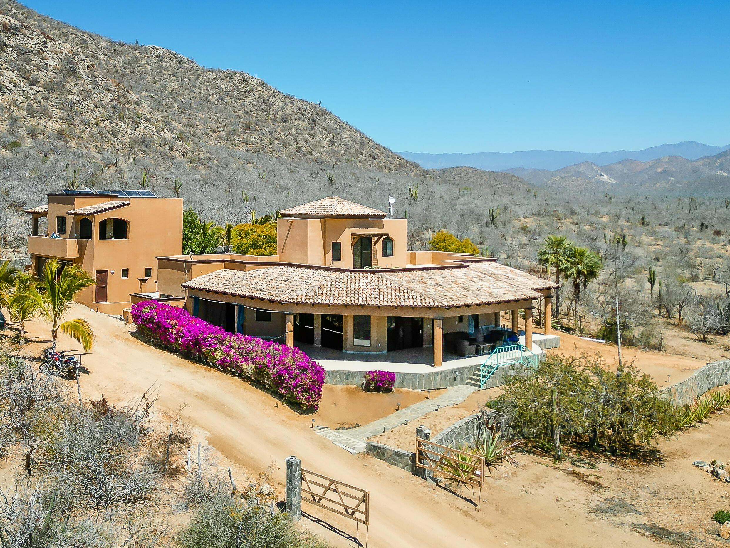 Migaloo 3 embodies contemporary luxury with a Malibu-inspired natural architectural design that seamlessly blends into the breathtaking Baja landscape. Perched in an exclusive gated enclave of just seven residences, this three-level turnkey masterpiece offers unparalleled sunrise and sunset views over the Pacific Ocean where whales breach and sea turtles lay eggs in the miles of pristine beach a few steps away. This home features four bedrooms, including two primary suites, a 3-car motor lobby, and a glass elevator connecting every level. The main level boasts an open-plan living area with a state-of-the-art kitchen and a discreet butler's kitchen for seamless entertaining. Enjoy a temperature controlled tasting room enclosed in glass to include the Ocean View over the Pool. Step outside to the expansive social terrace with a sparkling pool, hot tub, outdoor kitchen, and lounge area, orhead to the rooftop lounge through the glass elevator with fire pit and endless panoramic ocean, sunrise, and sunset views. Everything, from the custom furniture to the artwork was designed and manufactured in Mexico specifically for this home. All brand new and designed to reflect a chic beachside elegance. Unlike any of the other listed properties in the Migaloo community, This fully furnished haven is ready to be your private slice of paradise.